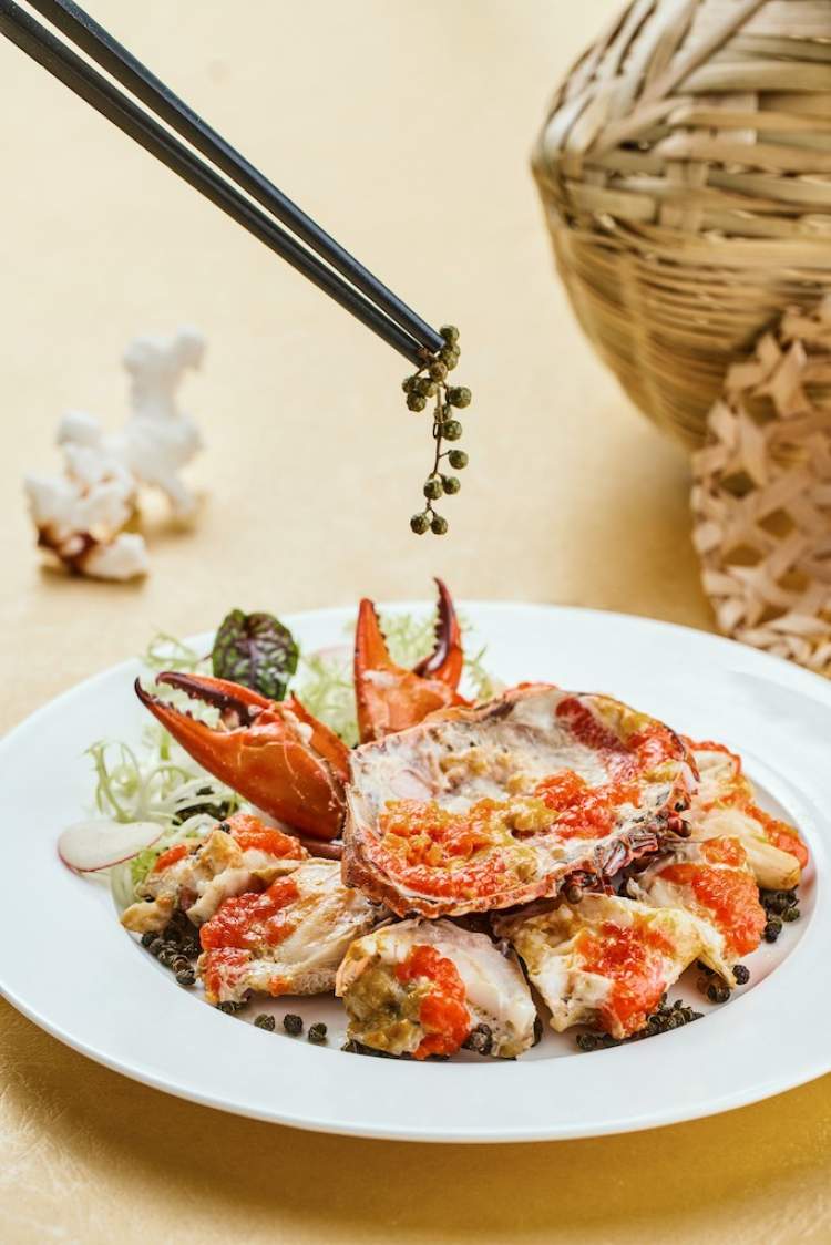 据了解,在这份十五道菜组成的春夏菜单里,还有华南地区由美食顾问张新民和厦门华邑主厨一一调制的传统潮菜。可别以为又是一次经典再现,每一道都有创新之举,如花椒焗蟹改用花椒虾油焗膏蟹;蒜油红苋则以鱼露取代酱油增鲜,在金蒜片爆香的热油中呈现春末夏初的清爽;甜品反沙芋头则一改纯粹的甜味,奥妙就是,关火后趁芋头条尚未凝固即刻撒葱花翻炒,用新鲜的葱花香提升这道甜品的绵脆鲜香。