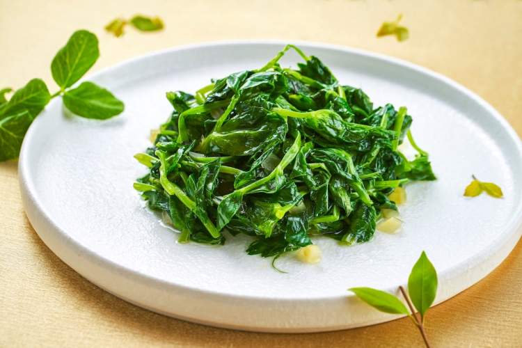 刚刚还提到云南特产的松露,下一道滇味豌豆尖就用上了。当季的翠绿豌豆尖,爽脆之余略有些豆尖的腥气,滴上少许云南本地的松露油即可除去豆腥,还能增添醇香,再搭配风味地道的腌菜杆调味,呈现滇地酸辣风情的同时也留下春日清新香嫩的口感。