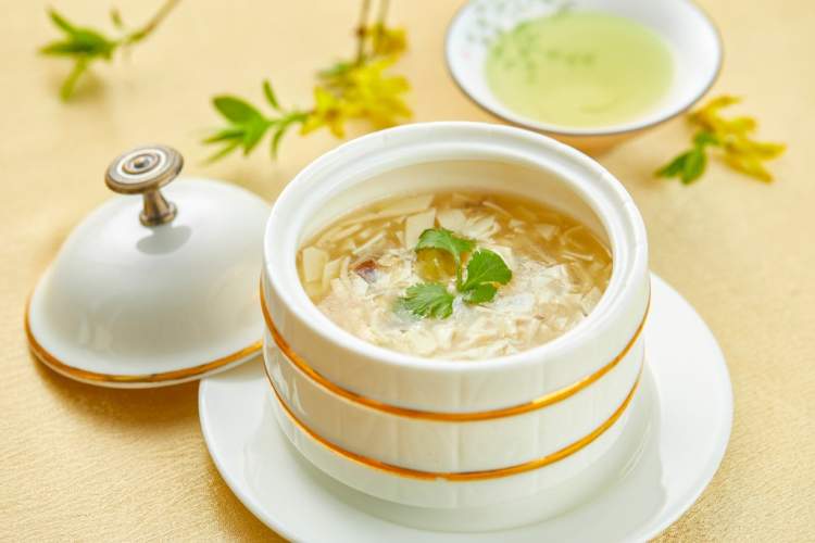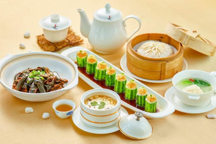 在上海静安香格里拉大酒店夏宫中餐厅总厨廖师傅亲力亲为设计的“春茶飨宴”单点和套餐菜单上,还有“黄山毛峰脆皮鸡”、“普洱白背木耳花胶老鸭汤”、“大红袍蒸银鳕鱼”、“乌龙茶担担面”等菜品。在廖师傅看来,春茶入席还得兼顾上海食客的口味偏好,更重要的是春天的时令食材也不能落下。