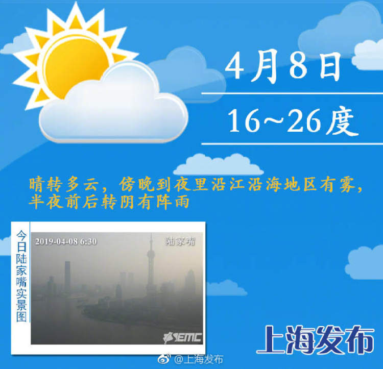 春要捂 春要捂 春要捂 重要的事情说三遍 周到君 2019-4-08 来源:周到上海 回归工作日啦~今天的热度将减退些!今天晴转多云,傍晚到夜里沿江沿海地区有雾,半夜前后转阴有阵雨,16-26度。 上海市气象部门预报,受江淮气旋影响,今天半夜起,明显降水和大风天气将到达上海。阴雨大风将持续到明天。 受冷空气和降水的影响,气温逐日下降,明天最高气温在25℃左右,后天的最高气温在21℃左右,大后天最高气温就只有16℃了……受冷空气和降水的影响,本市气温也会随之下降,之后最高气温将回落至20度以下。 春要捂,老古话还是要听的。 来源:周到上海 作者:周到君 赞一个 (1)