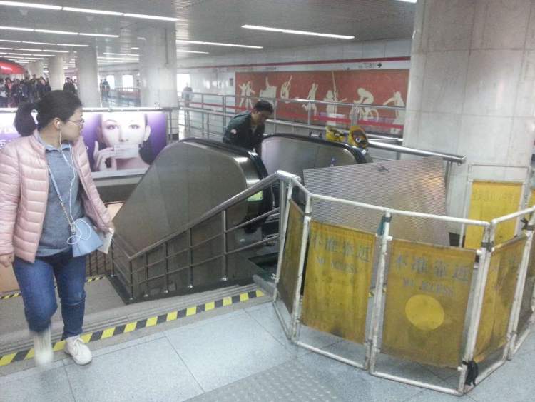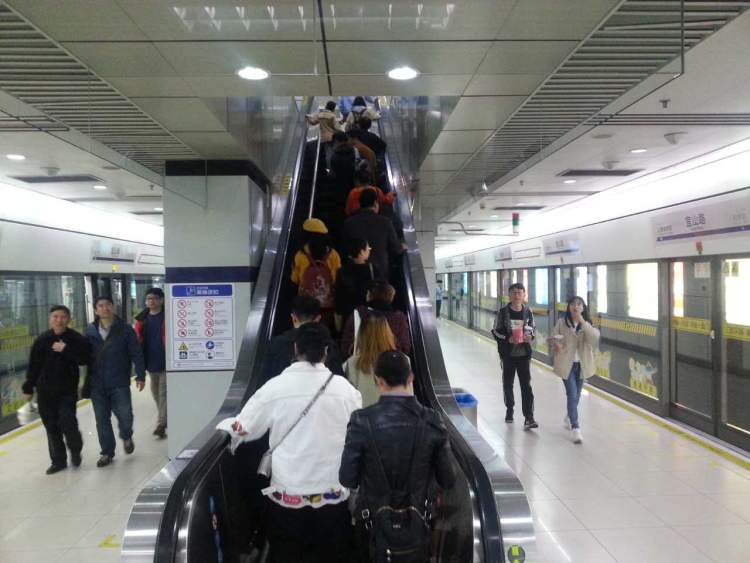 █4号线宜山路站,看上去电梯已不时兴“左行右立”