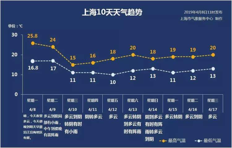 大风:9日白天到10日白天有一次偏南大风转偏北大风过程,顶计最大风力陆地可达6~8级,长江口区和沿江沿海地区8~9级,洋山港区和上海市沿海海面阵风有9~10级,10日傍晚起风力減弱。