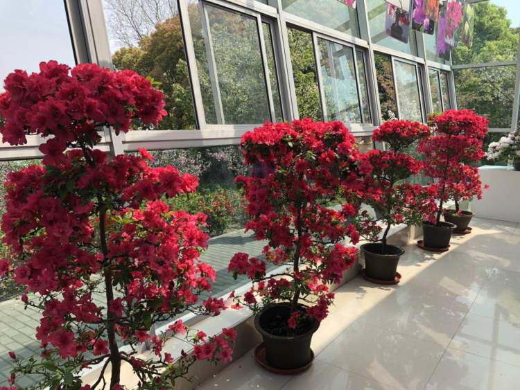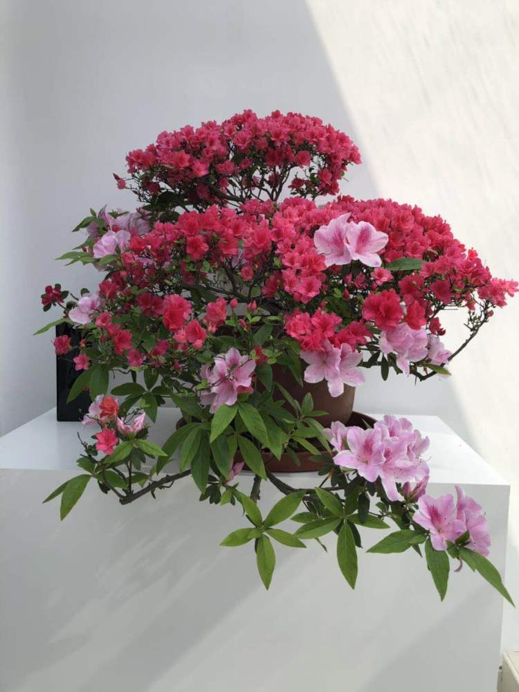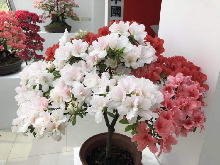 ■ 嫁接的杜鹃,一株上呈现多种花色。