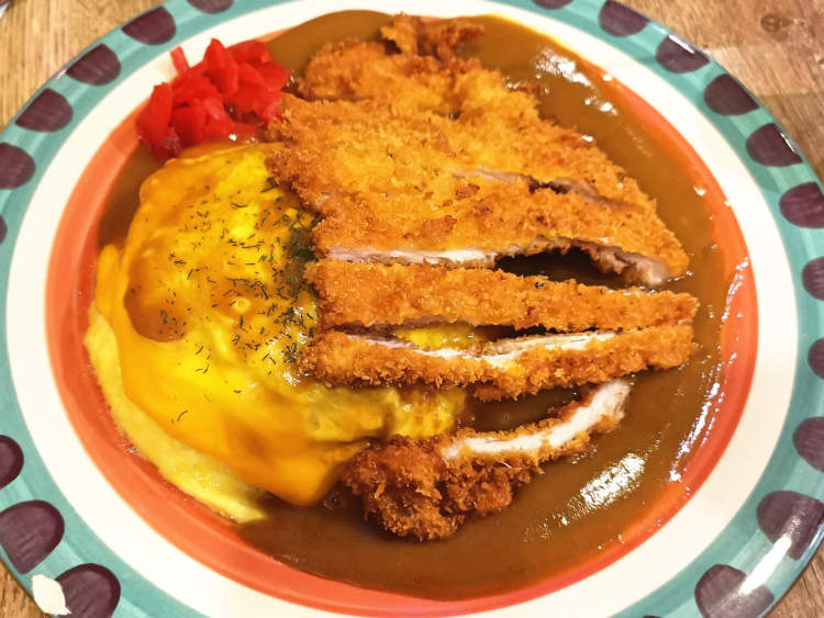 咖喱鸡排蛋包芝士饭