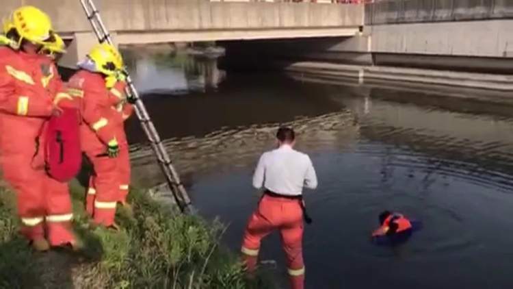 消防人员一边安抚男孩情绪,一边将伸缩梯和绳索递给男孩,全程仅用了两三分钟就成功将男孩救起。在救起男孩后由于担心男孩着凉,消防人员将救援服脱下给男孩换上并用毛巾擦干男孩身上的河水。