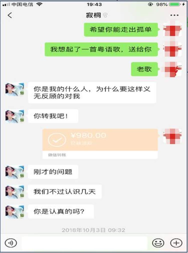 今年3月17日,市民卜先生来到虹桥路派出所报案,称其于2018年9月通过社交平台结识了一名叫“寂桐”的女子,两人互加微信后以谈恋爱为目的开始交往。