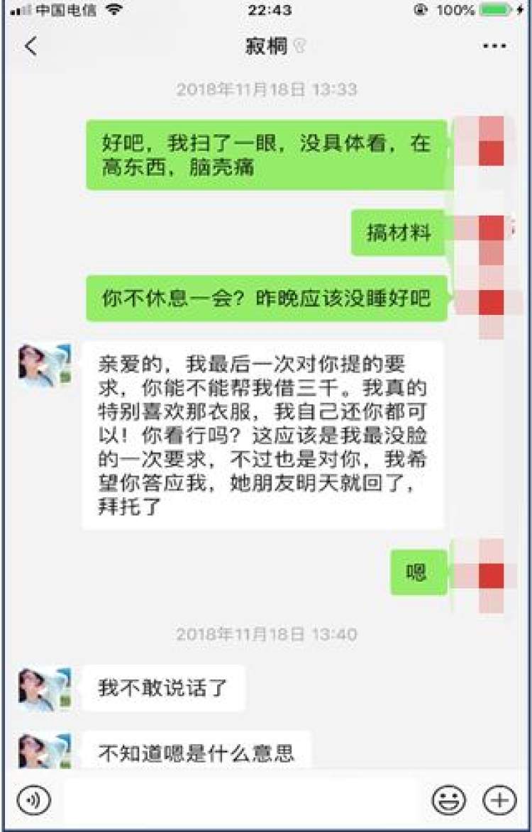 半年多的网恋过程中,“寂桐”以买手机、旅游、看病等理由先后向其索取2万余元,而当卜先生希望双方见面时,对方却以各种理由推脱。之后,卜先生希望讨回之前给予对方的钱款,但对方随即将卜先生拉黑。