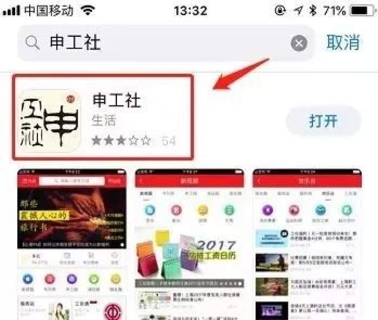 ①可前往手机各大应用商店搜索下载申工社App;