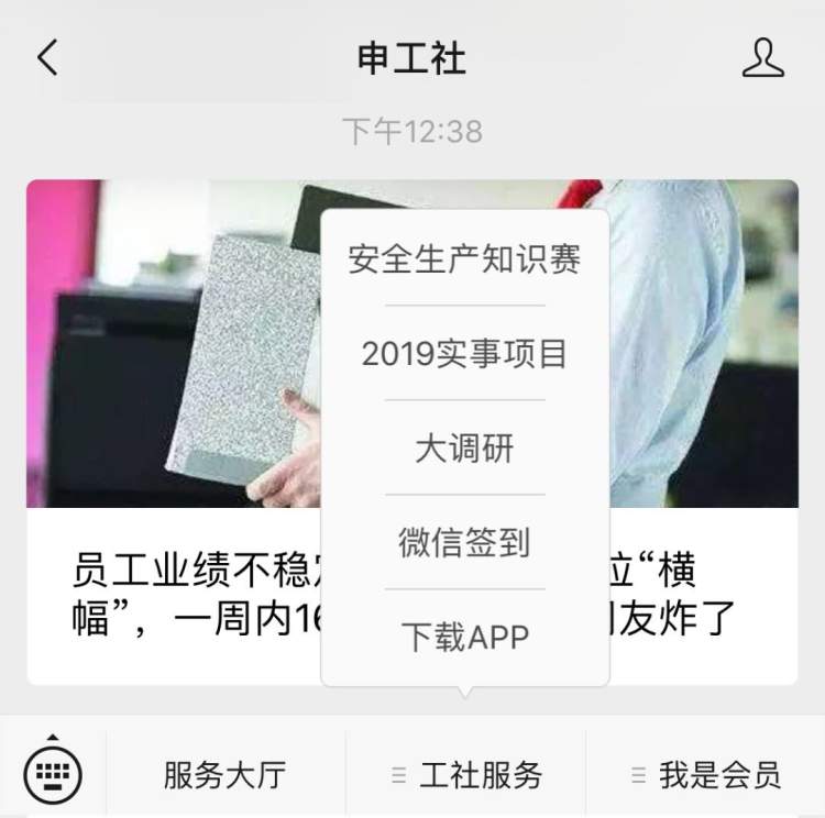 ②在“申工社”微信公众号菜单栏点击“工社服务”→“下载App”,找到二维码进行下载。