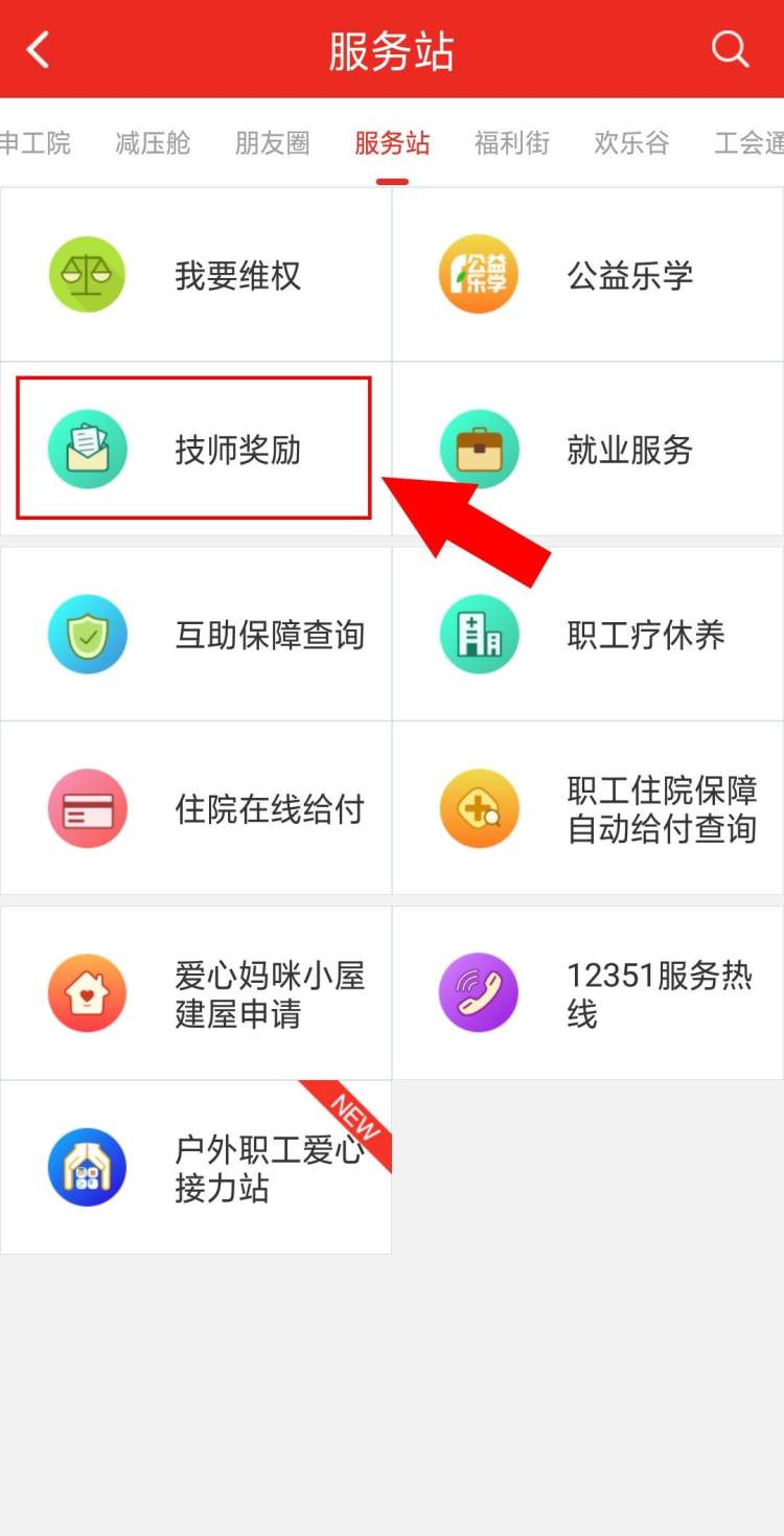 进入申工社App后,点击【服务站】栏目中的【技师奖励】,完整填写信息进行提交。