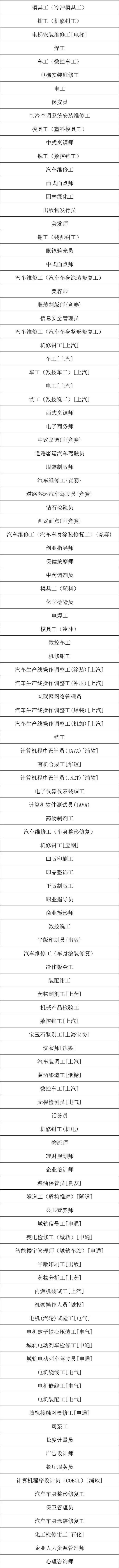 1、一般通用工种:由上海市人力资源和社会保障局发证,上海市职业技能鉴定中心鉴定的职业资格证书。