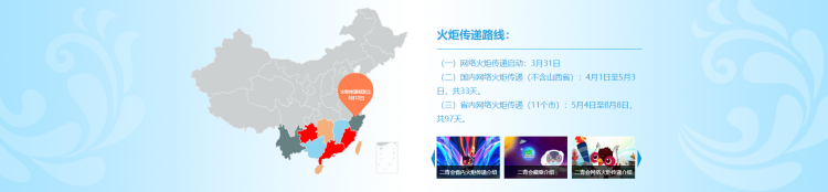 4月1日至8月8日,吉祥物“青青”手持火种从山西省芮城县西侯度遗址出发,将先后抵达44个站点,历时130天,是史上最长的一次网络火炬传递。