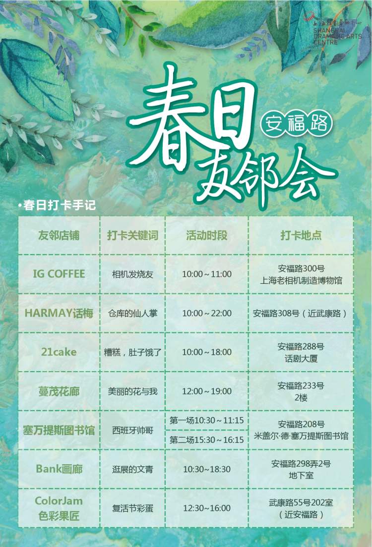 除了半价购票以外,上话还联手安福路的商铺们,为活动当天的购票观众准备了一系列好玩又有趣的“春日友邻会”探店体验活动,让大家在购票之余可以尽情“玩转”安福路网红小店。