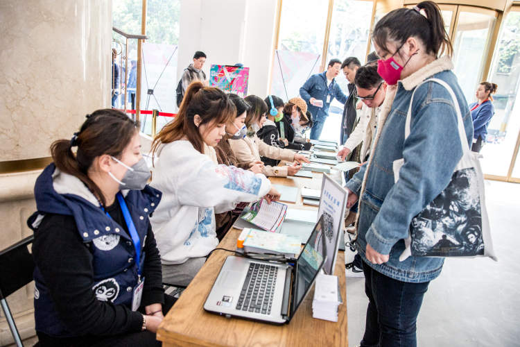 早在9点之前,就已有大批观众早早来到上话门口开始井然有序地排队。主办方特意在大堂准备了座椅,让观众可以在室内排队、休息。