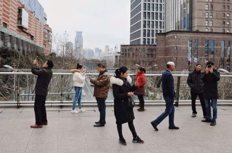■走上人行天桥,游客们纷纷掏出手机,不停地拍照。