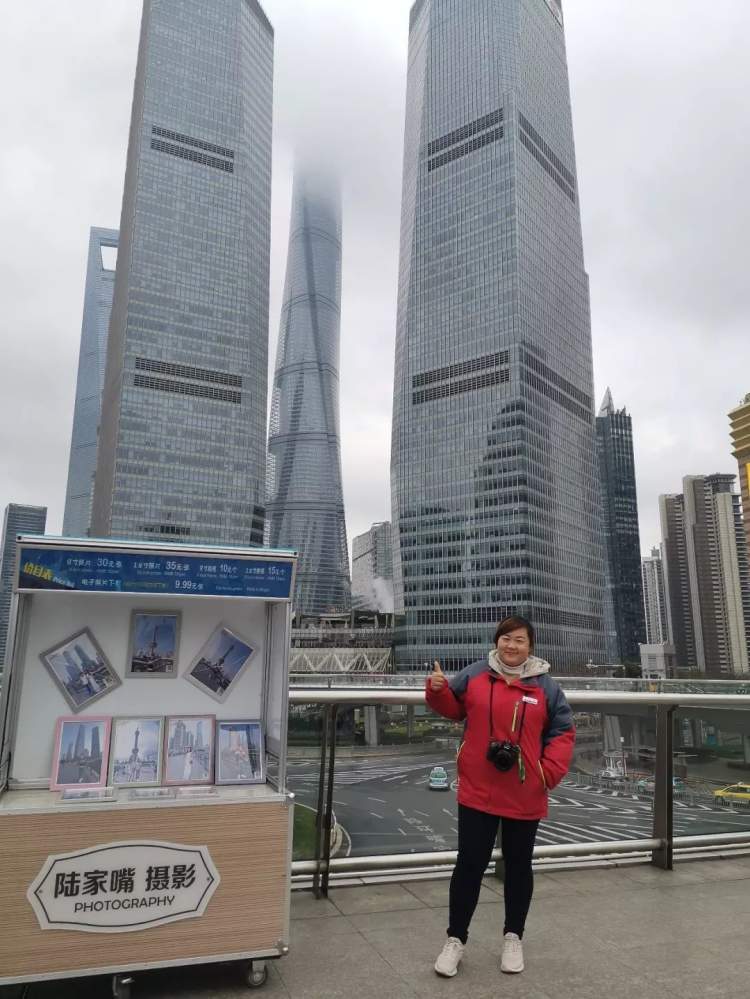 每天早上,她都会站在一张写有“陆家嘴摄影”的柜台前,脖子上挂只单反相机,伴随着身后音响里《无地自容》的有力节奏,露出一脸贾玲式的憨厚微笑。