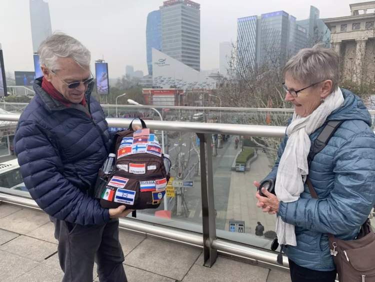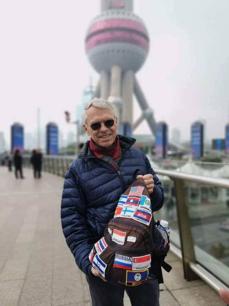 所以当美国人David在天桥上留下“到此一游”的纪念照时,他决定把中国的国旗也缝在自己的背包上。