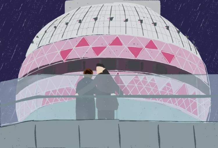 “我进去要花220块钱,发毛病啦?所以就站在天桥上等她出来。天桥这个位置正好对着东方明珠1号门,她一出来就能看到我。”