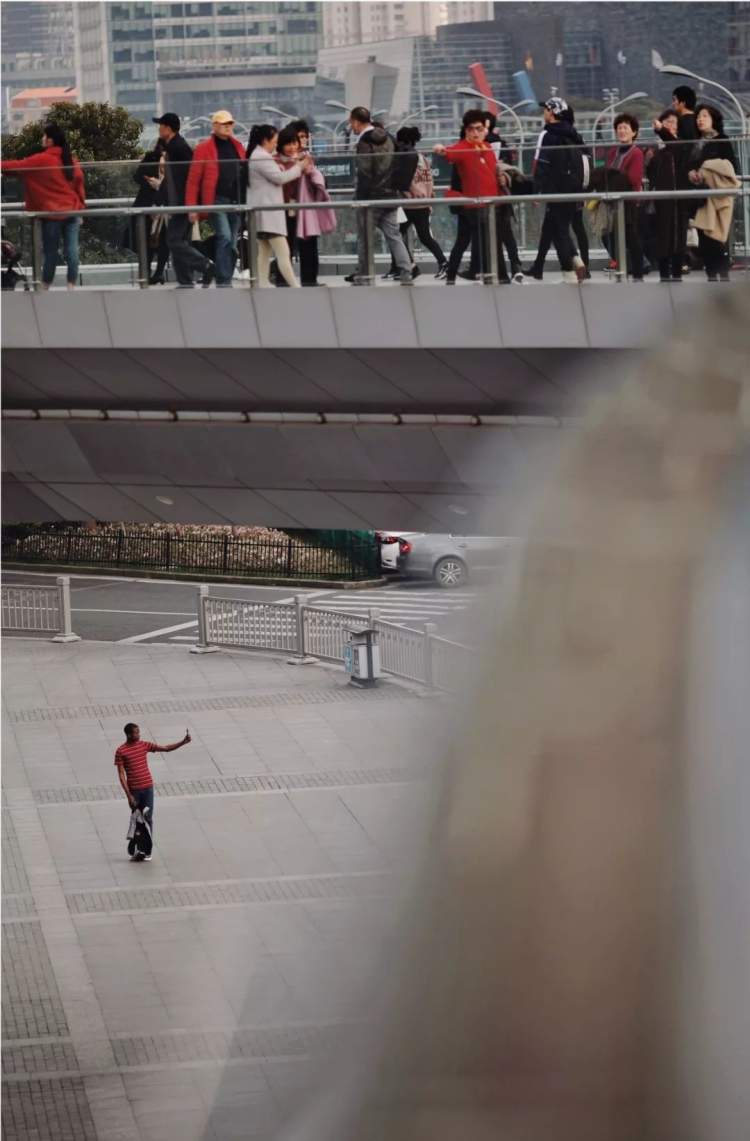 当然,天桥上除了游客、拍照市民、景点摄影、保安、行人之外,还有一些人因为其他原因出现在天桥上。