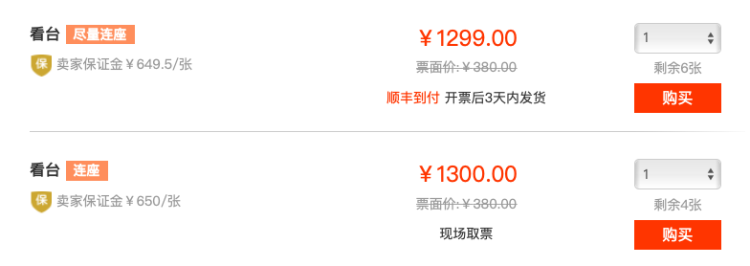 380元的门票,已经卖到了1300元。