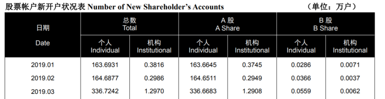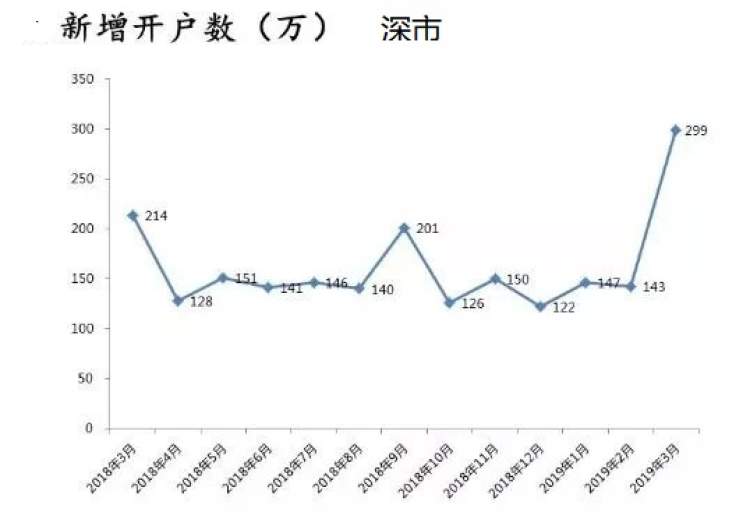 此前,深交所发布的数据显示,3月份深市新增开户数299万,环比上月的143万增长109.1%,创出了自2017年3月以来的新高。