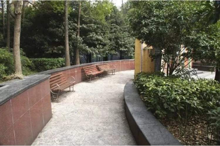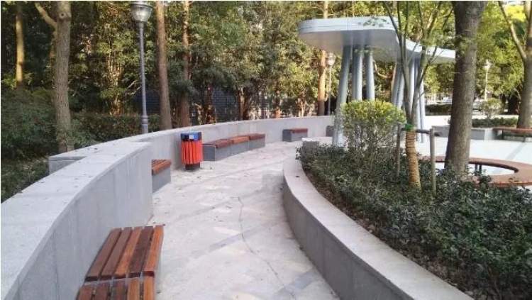 对休闲座椅、花坛挡墙、地坪铺装都进行翻新。将原本色调沉闷的黑色铁艺栏杆,用轻快明亮的浅黄色替代。翻新后的绿地整体环境非常轻快明亮,游园的舒适度蹭蹭蹭地上升!