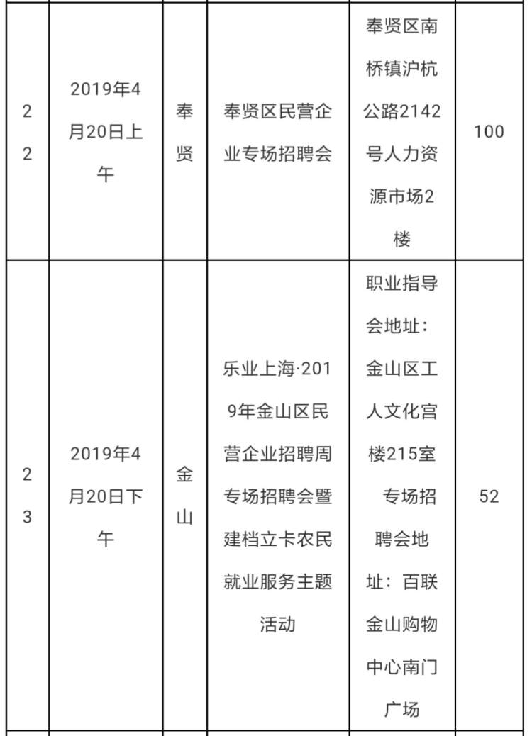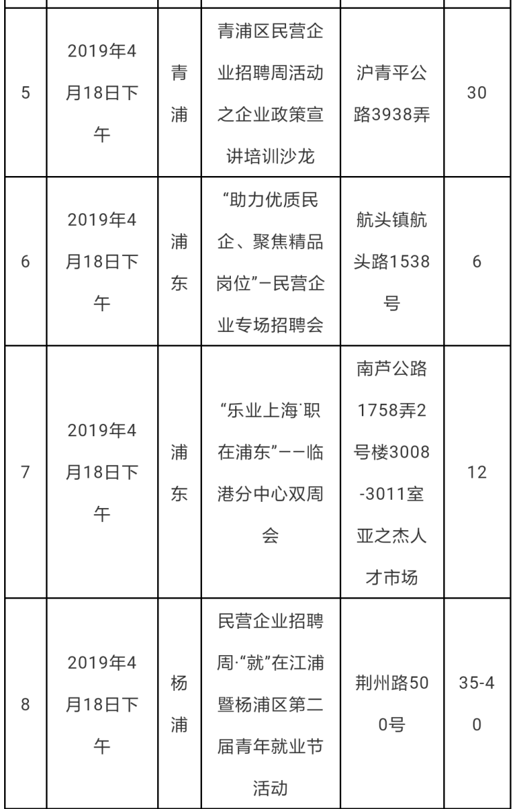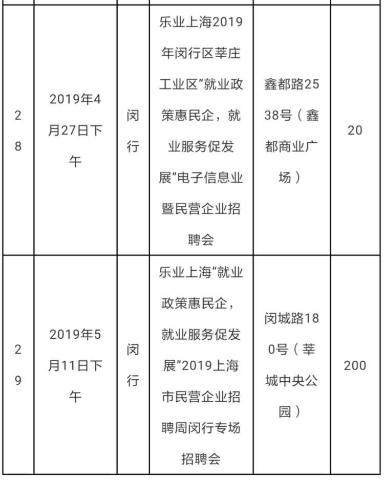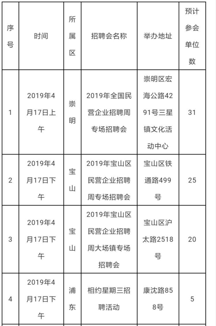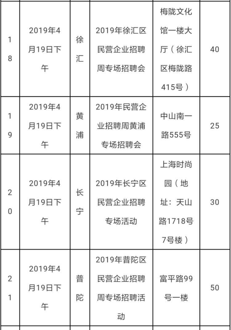 2019年上海民营企业招聘周部分活动安排情况表