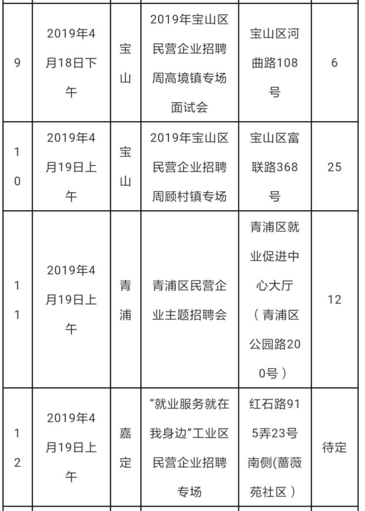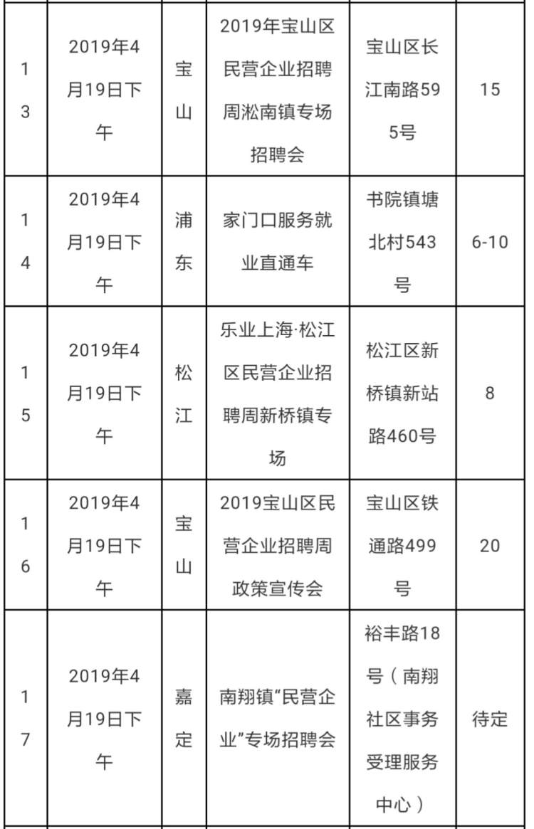 记者刚刚收到来自人保部门的消息:2019年上海民营企业招聘周活动已经启动,全市各区将在接下来的一周里举办各种类型的招聘活动,举办各类招聘活动29场。本次活动的主题为“就业政策惠民企,就业服务促发展” 。服务对象面向各类用人单位;以高校毕业生等青年群体等为重点,同时面向各类求职者。