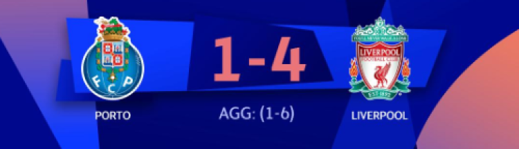 最终利物浦以4比1取胜,总分6比1力克波尔图晋级欧冠四强。