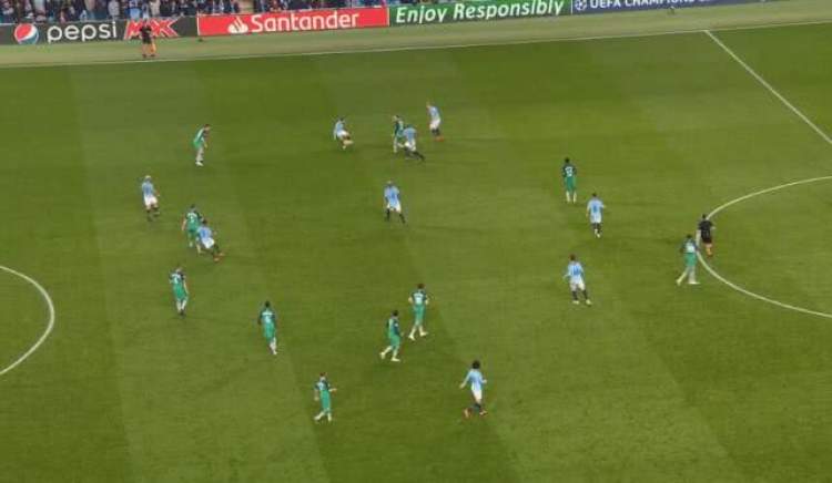 第11分钟,阿圭罗左路内切分球,贝尔纳多突入禁区右翼攻门,球被罗斯挡了一下后入网,曼城扳成2比2平,总分仍以2比3落后于热刺。