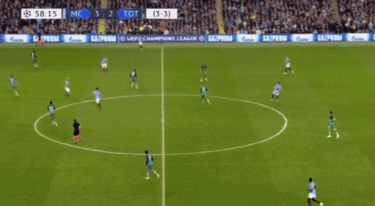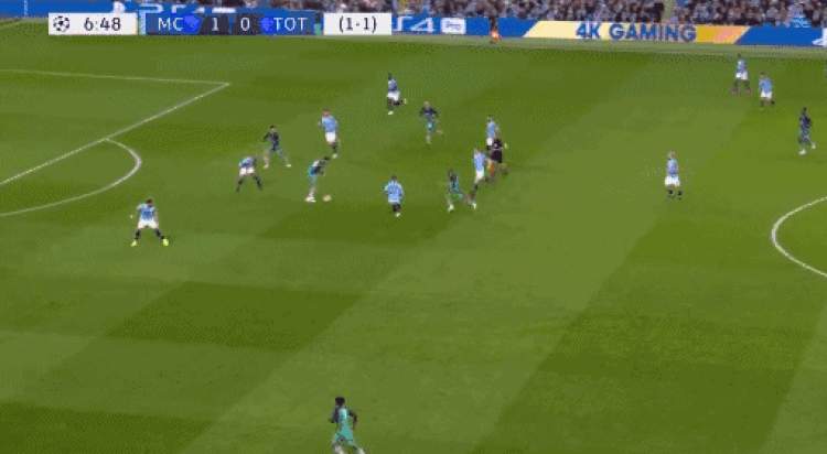 第59分钟,曼城实现反超。德布劳内中路过人后送出直塞球,阿圭罗禁区右翼爆射命中,曼城4比2领先热刺,总分4比3反超。