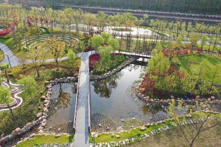 根据场地现状、市民活动需求、动静分区等综合考虑,公园将细分成主入口区、户外运动区、高线花园走廊、滨湖漫步区、公园活力角、樱花水岸、湿地花谷区、儿童游乐区八个功能区,各区主题突出,区域特色鲜明,各有不同景致和趣味。