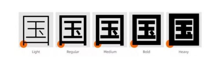 字重:字体笔画的粗细。一般在字体家族名后面注明的Thin、Light、Regular、Book、Bold、Black、Heavy等都是字重名称。
