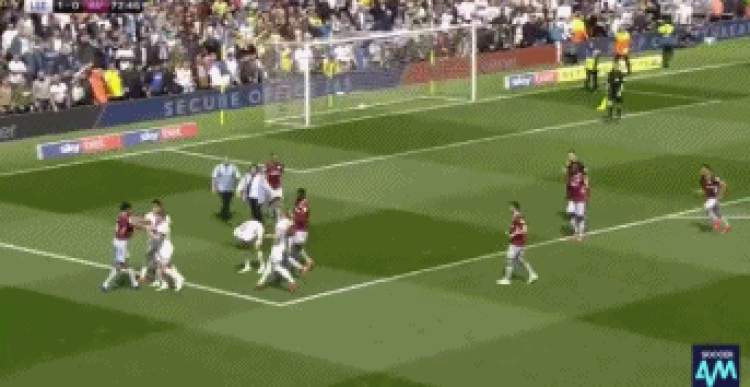 只见,场上的利兹联队球员基本上站着不动,就连守门员都放弃防守,站在禁区前沿,让维拉球员顺利完成射门。