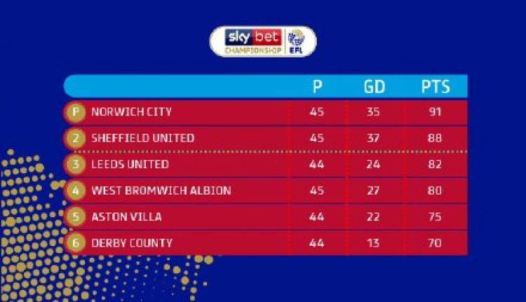 在早些时候结束的一场比赛中,坐镇主场的谢菲联以2:0击败已经降级的伊普斯维奇,稳居积分榜第二位,并领先第三名的利兹联6分。只要利兹联在本轮失利,谢菲联就将紧随诺维奇,占据英冠前两名直接升入英超。