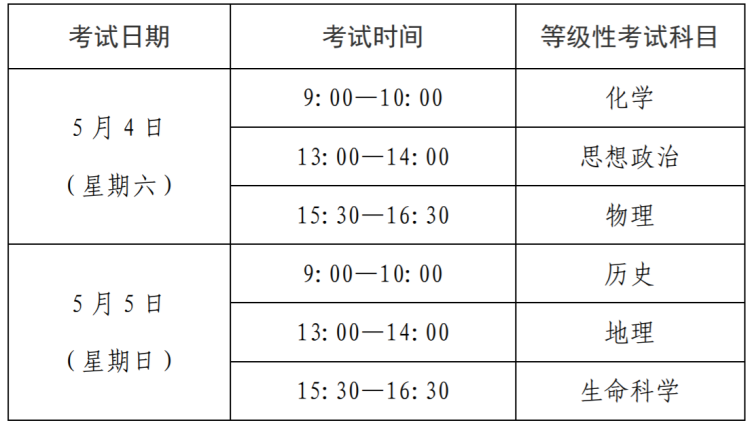 2019年上海市普通高中学业水平等级性考试考试科目及时间安排如下: