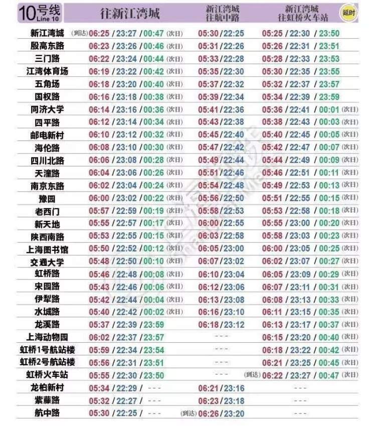 注意!今明两天,上海一大波轨交线延时运营!文末有各条线路实用干货,请收藏 上海交通 2019-5-03 来源:周到上海 今明两天晚归的小伙伴们注意啦~据申通地铁集团消息,为提升夜间服务运营水平,5月3日、5月4日,1、2、7、8、9、10号线实施延时运营,末班车时刻与周五、周六常态延时运营末班车时刻一致。详见下文~ 为满足乘客出行需求,五一小长假期间,运营方一方面强化调度运营指挥,优化备车投用,遇大客流机动投放备车,保障运力供应。另一方面,进一步强化节日期间列车、供电等专业设施设备的维检力度、预案落实等保障工作,确保运营安全有序。 各条线路首末班车时间 快收藏一下吧~ 来源:周到上海 作者:上海交通 赞一个 (13)