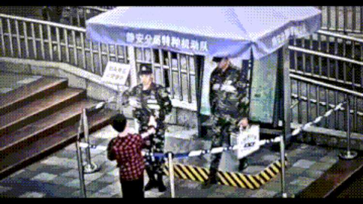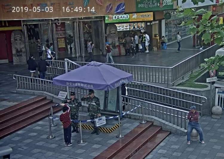 路边的监控录像刚好拍下了这感人的一幕:当时,这名男孩和一名女性长辈路过哨位,男孩被哨兵所吸引,在和家长短暂沟通后,手握一瓶牛奶饮料来到哨位前。