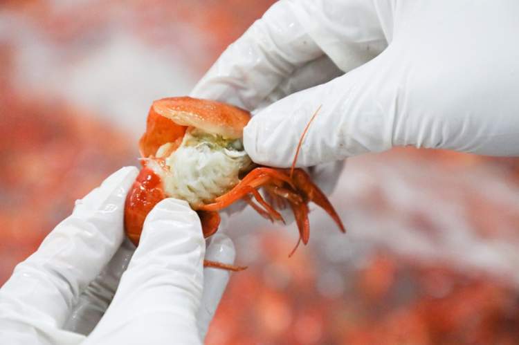 从这里开始,收上来的小龙虾就要经过重重筛选,就好像古代帝王选妃一样,姿态婀娜(完整)、古灵精怪(活力)的虾才能进入到下一轮。