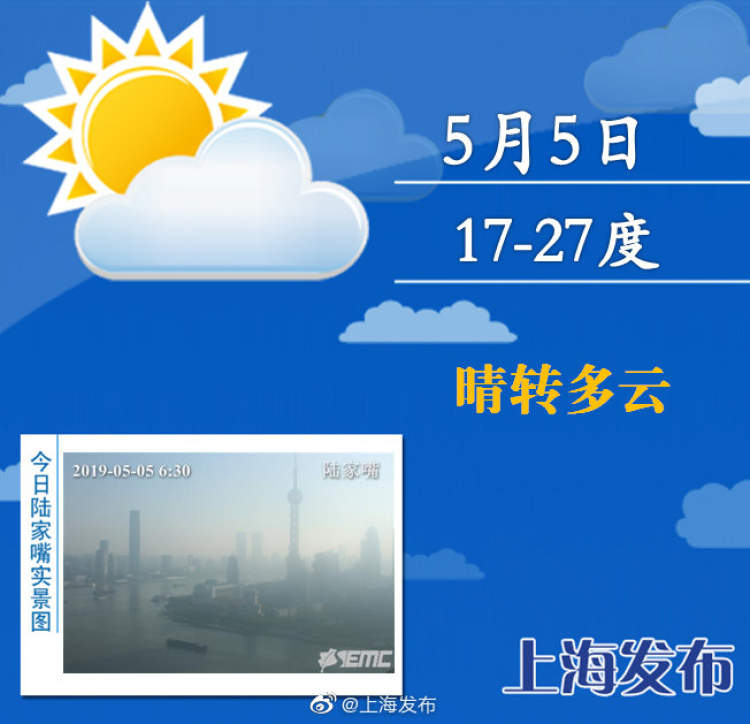 “小长假”结束,要收收心努力工作/学习了哦~今天上海晴转多云,最高温度27度,最低温度17度,整体来说天气还是不错哦~预计,下周气温起伏较大,呈抛物线状变化。周一直降7度,周二略作调整,周三再降4度,周四急速拉起上升7度!周二周三还将有雨水光顾。