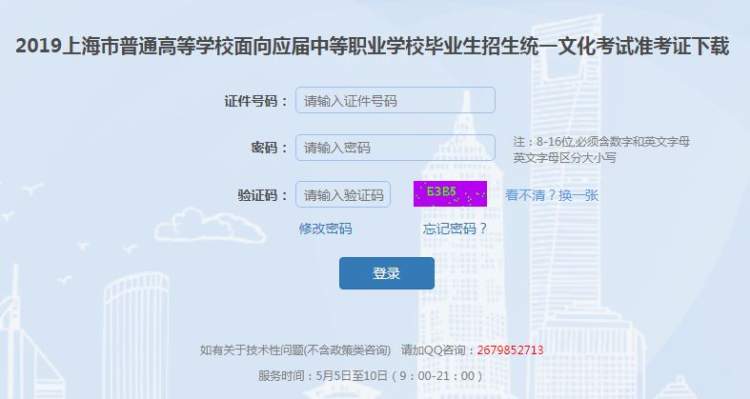 3.考生在下载准考证时如遇到操作问题,可在指定时间内(时间:5月5日-10日,每天9:00-21:00)内通过QQ号(2679852713)进行在线咨询,也可在工作时间(9:00-16:00)拨打电话021-35367070进行咨询。