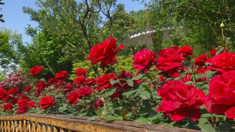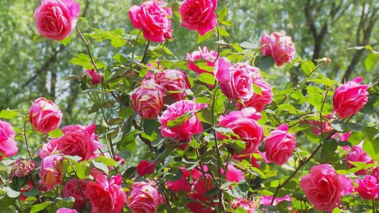本次展出月季约50个品种,其中,盆栽月季有莎士比亚、法国香水、夏洛特、黄金庆典、诺瓦利斯等12个品种120盆。地栽月季面积500多平米,种植月季30多个品种5000余株,主要品种有粉和平、朝云、绿野、加里娃达、白柯斯特、粉扇、寒地玫瑰等。