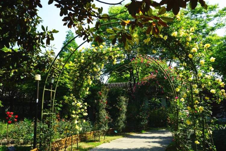 走进金山荟萃园月季花海中,红白交织、紫黄映衬,一朵朵娇艳欲滴的月季花俏立枝头,争奇斗艳,微风轻拂,月季花随风摇曳,散发出阵阵甜蜜的幽香。游客置身其间,漫步、赏花、拍照,尽享“花中皇后”的浪漫与馨香。