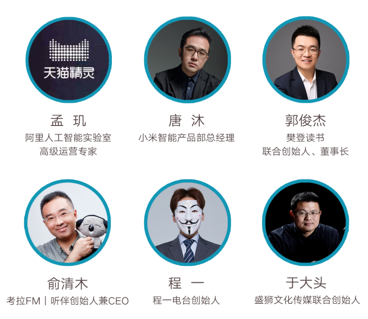 天猫精灵、小米小爱等智能音箱品牌、程一电台等声音自媒体知名IP将齐聚一堂,探讨全新技术背景下,音频行业的跨界融合之道。他们的前沿观点,值得期待与关注。