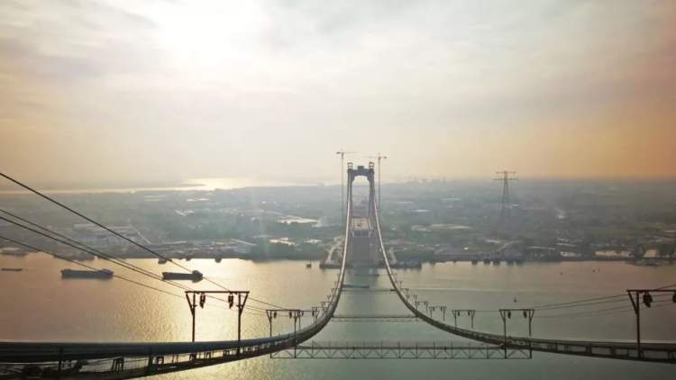随着全桥主缆的架设完成,后续将进行紧缆缠丝、安装缆载吊机、索夹和吊索、架设中跨钢梁及桥面系等作业,预计明年8月底大桥具备开通运营条件。
