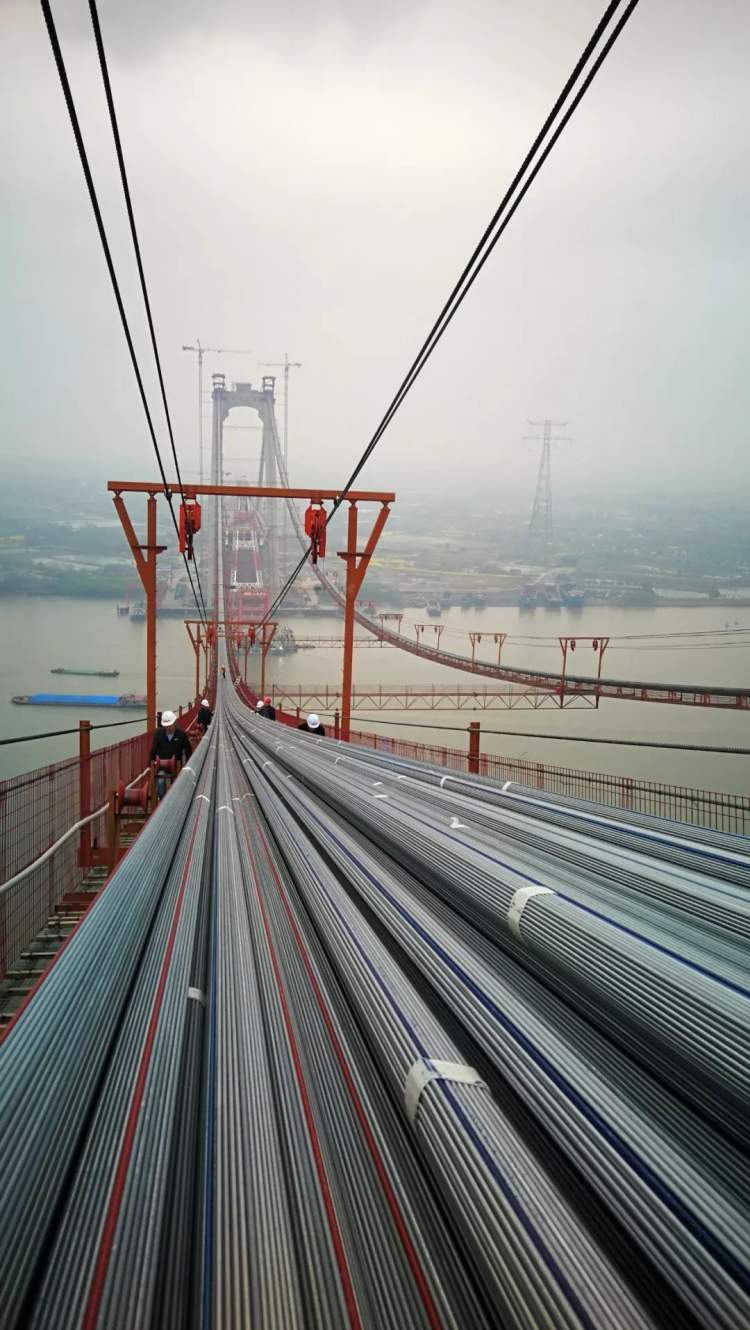 主缆架设过程中,建设者们创造了单日安装索股最多19根,每日平均大于9根的记录。