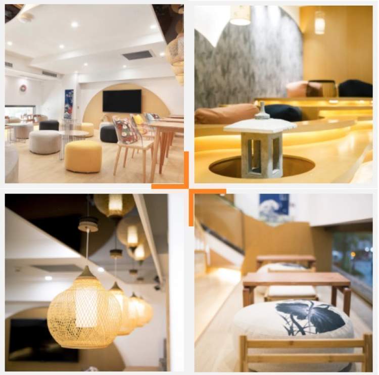 原木色为主的色调,清新而富有特色的日式装饰风格,随处可见的靠垫和懒人沙发,在很大程度上营造出了令人放松的环境,在视觉和身体的实际感受上是相当不错的。