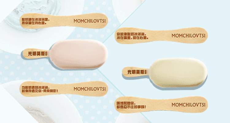 冰淇淋吃完还有惊喜哦!每一根光明莫斯利安酸奶冰淇淋的棒扦上都有一句甜甜的小情话,配合冰淇淋本身的甜蜜醇厚,看了就想让人谈恋爱好嘛~