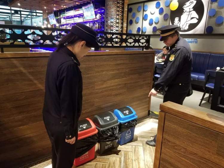 五角场凯悦酒店在大堂公共区域内按要求设置垃圾分类收集容器。杨浦区中心医院垃圾分类设备齐全、分类规范,建立了垃圾分类收集运输台账制度,记录生活垃圾种类、去向等信息,并与收运单位做好交接、登记和统计工作,规范了垃圾分类的收运处置流程。但是,上海电力大学(平凉校区)依然存在垃圾分类不规范情况,特别是生活垃圾收集容器设置混乱,缺乏清晰明辨的标识,不利于生活垃圾正确分类投放。对此,执法队员进行了行政处罚,并责令整改。