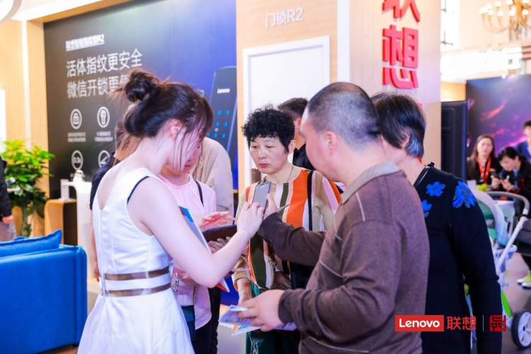 在联想集团的展台,大量消费者进行体验,一个消费者正在把玩其智能门锁R1,用指纹、微信开锁,都已经成为现实。也有消费者坐在沙发上,体验全屋智能系统产品。